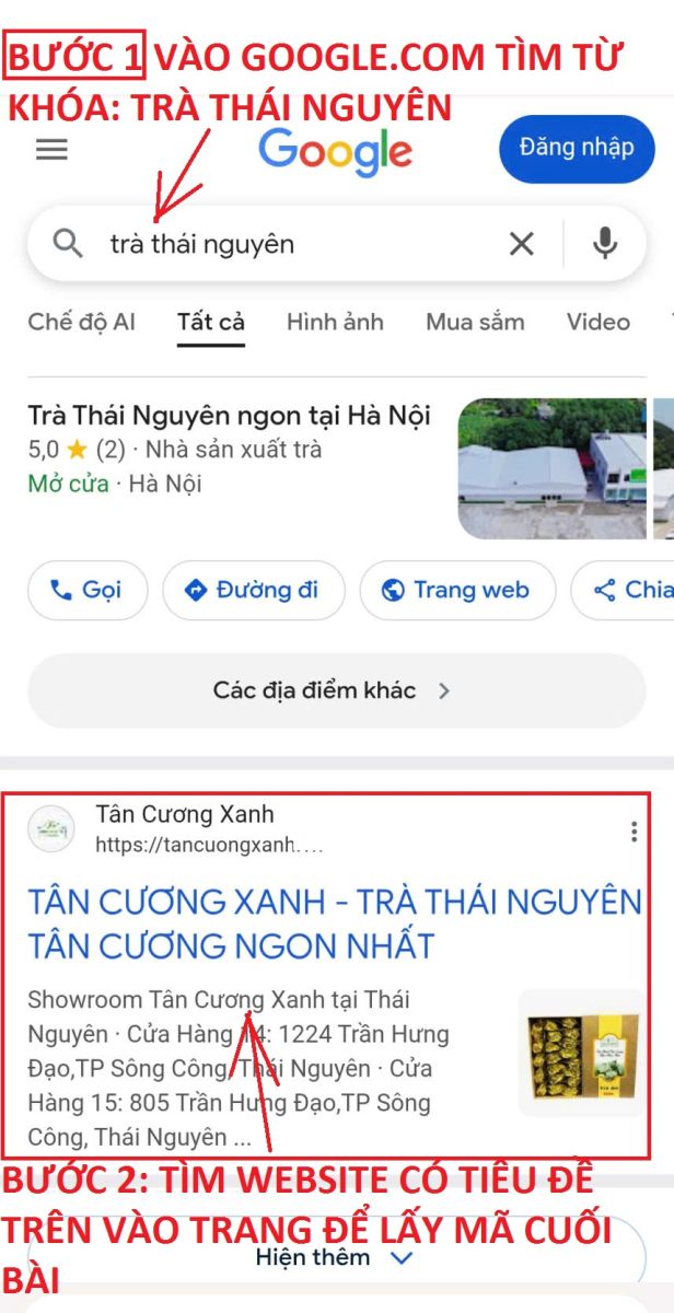 Bước 1. Vào GOOGLE.COM  - Tìm từ khóa: TRÀ THÁI NGUYÊN