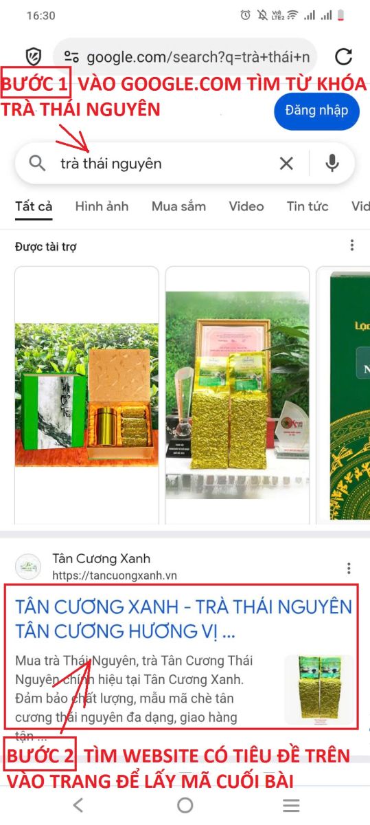 Bước 1. Vào GOOGLE.COM  - Tìm từ khóa: TRÀ THÁI NGUYÊN